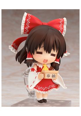 Good Smile Company vuelve a presentar, dentro de la colección Nendoroid, la figura de Reimu Hakurei 2.0. Está basada en su aspecto en el juego "Touhou Project" y mide 10 cm. Contiene placas faciales (cara estándar, de combate y sorprendida) y partes opcionales (vara de oración, cartas de amuleto, taza de té, caja de donaciones y partes arrodilladas para mostrarla orando).