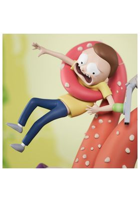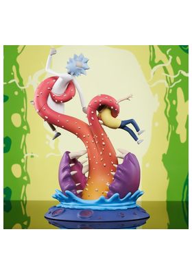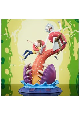 Diamond presenta, dentro de su colección de dioramas, esta estatua en la que Rick y su nieto Morty son atrapados por una lengua de pinchos de una misteriosa criatura a la que Rick apunta con su pistola de portales. Esta estatua mide aproximadamente 25 centímetro, está fabricada con PVC de primera calidad y viene en una caja con ventana a todo color pensada para su exposición.