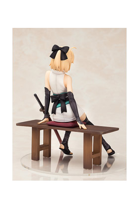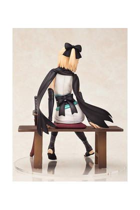 Good Smile Company presenta la figura del siviente Souji Okita, basada en el juego de móvil "Fate / Grand Order". Se trata de una figura hecha en ABS/PVC de unos 15 cm de alto. Se muestra sentada en un banco y viene con su bufanda, que se puede quitar y una espada detrás de ella.