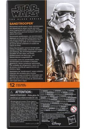 Revive la trilogía original con esta figura articulada del Sandtrooper basada en su aparición en "Star Wars: A New Hope" ("Star Wars: Una nueva esperanza" en España). La figura forma parte de la línea premium The Black Series y mide 15 cm. Incluye 3x accesorios: 2x blásters y 1x mochila desmontable. Cuenta con diseño y detalles fieles a la película, así como articulaciones premium para exhibirla en poses dinámicas. Se presenta en una caja con ventana. UNIDADES LIMITADAS