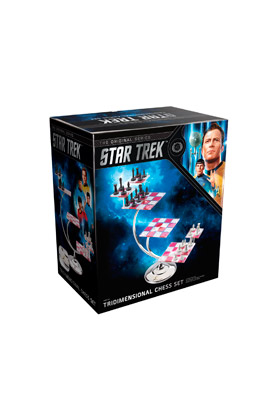Noble Collection presenta este fantástica réplica del icónico set de ajedrez tridimensional, basado en la clásica serie de TV Star Trek, la serie original de la década de 1960. Incluye 32 piezas de fundición a presión que miden aproximadamente 4 cm de alto. El juego de ajedrez mide aproximadamente 33.5 cm de alto y 16 cm de ancho y cuenta con 7 tableros de juego de acrílico translúcido interconectados, montados sobre una base de aleación de zinc. También se incluye un libro de reglas.