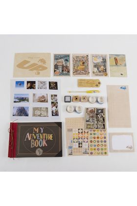 Cerdá presenta este set de papelería tipo scrapbook inspirado en la película "Up" de Pixar. Se presenta en una caja ilustrada con ventana de21,4 x 45,3 x 3,2 cm lista para regalar. Contiene 1x álbum, 1x bolígrafo, 2x sellos, cinta adhesiva, etiquetas con nombre, 1x block de notas adhesivas y varias hojas, postales y pegatinas.