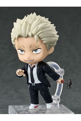 Good Smile Art Shanghai presenta, como parte de la colección Nendoroid, la figura de 10 cm de Shin, inspirada en el popular anime "Dorohedoro". Incluye x2 places faciales (cara normal y enloquecida), x1 martillo, x1 máscara, 1x gafas, 1x ilustración de una puerta con base propia y otros accesorios para recrear diversas poses. Se exhibe con un stand articulado y base rectangular.