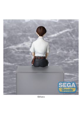 Sega suma a su colección PM Perching esta figura de Shinji Ikari, basada en el protagonista de la tetralogía cinematográfica anime "Rebuild of Evangelion". Mide unos 14 cm de alto y está diseñada para colocarla sentada sobre una repisa o estantería. Fabricada en PVC, presenta una pose introspectiva que captura la esencia del personaje.