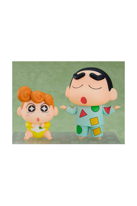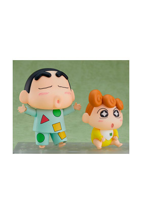 Good Smile Company presenta esta figura Nendoroid del curioso Shinnosuke Nohara de 5 años en pijama junto a su hermana pequeña Himawari, de la serie de anime "Crayon Shinchan". La figura de Shin Chan incluye tres expresiones intercambiables, sus cejas articuladas e intercambiables y su almohada. La figura de Himawari incluye dos expresiones intercambiables y partes de brazos y piernas para recrear varias poses. Se trata de figuras de PVC que miden 8 cm de alto e incluyen una base soporte para exposición.