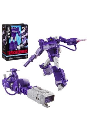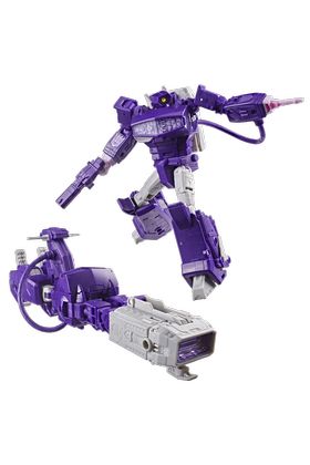Hasbro añade a su línea Studio Series la figura Voyager Class de Shockwave, inspirada en el personaje en la película de animación de 1986 "Transformers: The Movie". Este temible Decepticon presenta un diseño y acabados fieles a su aparición en la gran pantalla. Mide 16,5 cm en modo robot y se transforma en nave espacial cybertroniana en 26 pasos, ofreciendo una experiencia de conversión detallada y dinámica. Incluye 1x cañón que puede acoplarse en ambos modos. Se presenta en una caja con ventana ilustrada y manual de instrucciones. UNIDADES LIMITADAS
