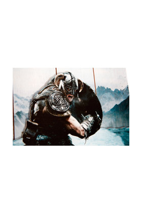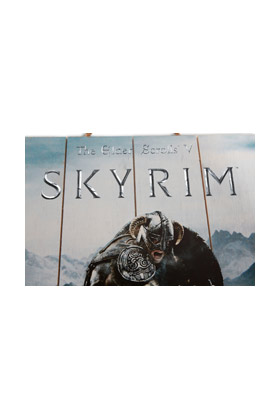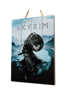 WOODARTS 3D es una colección de carteles de madera creada por Doctor Collector en colaboración con Bethesda licenses. Elaborados a mano e impresos a todo color directamente sobre madera, WOODARTS 3D tiene la particularidad de presentar motivos resaltados en láminas de madera previamente recortada, y encolada o clavada sobre la superficie, generando un efecto tridimensional con un toque artesanal. Al estar impresos sobre madera real, la beta de ésta puede influir en el aspecto final del cartel, dotando a cada WOODART 3D de peculiaridades gráficas que los diferencian entre ellos y los convierten en un artículo único. Este producto se basa en una imagen del videojuego "The Elder Scrolls V: Skyrim". Mide 30 x 40 cm y viene listo para ser colgado mediante un cordel.