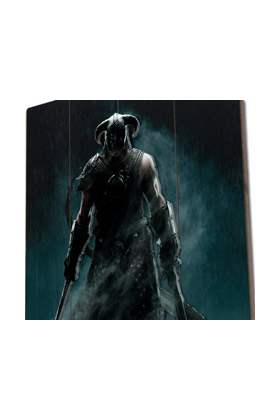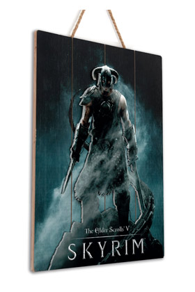 WOODARTS 3D es una colección de carteles de madera creada por Doctor Collector en colaboración con Bethesda licenses. Elaborados a mano e impresos a todo color directamente sobre madera, WOODARTS 3D tiene la particularidad de presentar motivos resaltados en láminas de madera previamente recortada, y encolada o clavada sobre la superficie, generando un efecto tridimensional con un toque artesanal. Al estar impresos sobre madera real, la beta de ésta puede influir en el aspecto final del cartel, dotando a cada WOODART 3D de peculiaridades gráficas que los diferencian entre ellos y los convierten en un artículo único. Este producto se basa en una imagen del videojuego "The Elder Scrolls V: Skyrim - Dragonborn". Mide 30 x 40 cm y viene listo para ser colgado mediante un cordel.