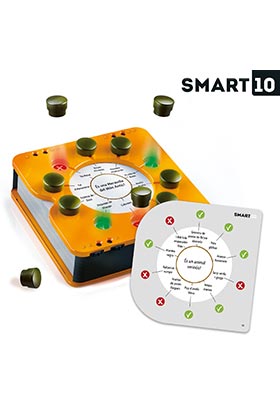 Tot el joc està inclòs en la compacta capsa Smart: les 200 preguntes i les seves respectives respostes, els comptadors de puntuació i els marcadors. No necessitaràs res més per a començar a jugar on vulguis!
