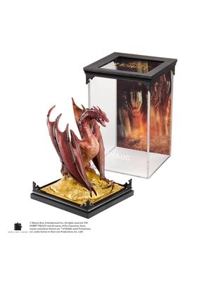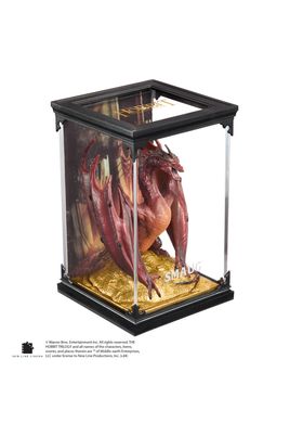 El gran dragón de fuego que habitaba bajo la montaña solitaria en las películas "The Hobbit" llega en forma de diorama. Smaug se presenta en una caja acrílica con fondo y puedes exponerla fuera de la misma gracias a una base incluida. Está hecho de PVC y mide unos 18 cm.