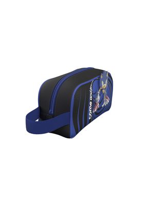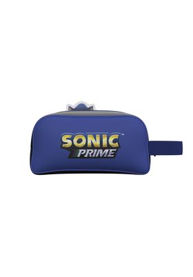 CYP Brands presenta dentro de su línea de productos de la serie Sonic Prime este neceser con asa. El perfil de Sonic sobresale sobre un fondo de espiral azul y negro.