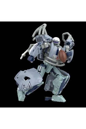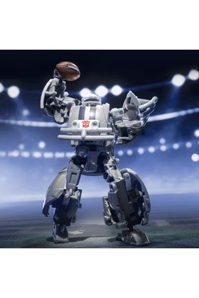 Hasbro lanza la figura Starblitz, que representa a los Dallas Cowboys, dentro de la colaboración oficial de "Transformers" x "NFL". Esta figura de 14 cm se transforma de robot a casco de fútbol americano en 23 pasos. Presenta los colores oficiales del equipo y diseño detallado. Incluye 1x mini casco que puede colocarse en modo robot, 1x mini balón de fútbol americano y 1x manual de instrucciones. Cuenta con múltiples puntos de articulación para exhibición o juego dinámico. Se presenta en una caja con ventana ilustrada. UNIDADES LIMITADAS.