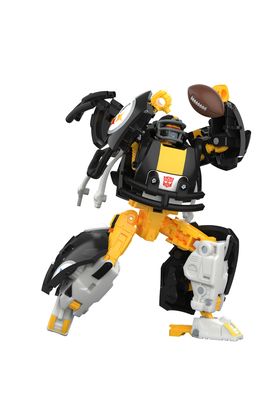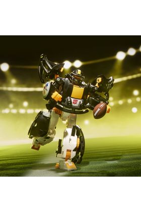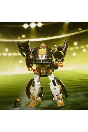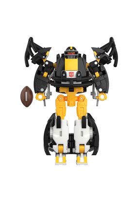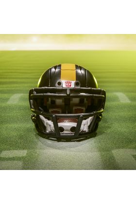 Hasbro presenta la figura Steelsmash, inspirada en los Pittsburgh Steelers, como parte de la colaboración oficial de "Transformers" x "NFL". Esta figura de 14 cm se transforma de robot a casco de fútbol americano en 23 pasos, combinando estética deportiva y diseño robótico. Incluye 1x mini casco para modo robot, 1x mini balón de fútbol americano y 1x manual de instrucciones. Dispone de articulación para recrear poses de acción o exposición en vitrina. Se presenta en una caja con ventana ilustrada. UNIDADES LIMITADAS.