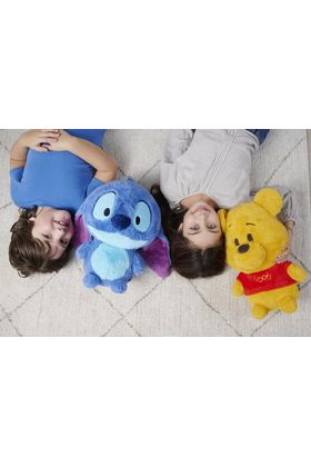 Simba presenta el peluche achuchable de Stitch, inspirado en la película de Disney Lilo & Stitch de 2002. Con una altura de 35 cm, está fabricado con material más suave al tacto de lo habitual, ideal para abrazar.