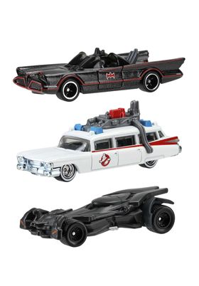 Mattel presenta este surtido de 10 vehículos Hot Wheels para celebrar el mundo del entretenimiento. Se trata de réplicas a escala 1/64 de vehículos populares como el de Batman, el DeLorean de Regreso al futuro, o los de los videojuegos Forza o Grand Turismo. Estos vehículos icónicos de los medios de comunicación están inmortalizados en este surtido de veinte modelos exclusivos para coleccionistas.
