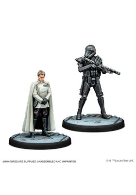 El yugo que el Imperio mantiene sobre la galaxia se afianza con la construcción de la Estrella de la Muerte, y con el director Krennic supervisando su finalización, la victoria parece casi segura. Este director de la OSI tiene bajo su mando a fuerzas de élite como los soldados de la muerte y los soldados costeros. El especialista de los soldados de la muerte protege a su comandante y lidera a las tropas con una precisión mortífera, conformando una escuadra provista de una potencia de fuego abrumadora con la que aplastar a todas las fuerzas rebeldes que intenten oponérseles. Contenido: 4 cartas de postura de unidad, 4 cartas de órdenes de unidad, 4 cartas de perfil de unidad, 6 miniaturas.