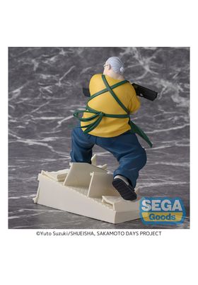 Sega presenta a Taro Sakamoto con su uniforme de trabajo dentro de la línea Luminasta, basada en el personaje del anime "Sakamoto Days". La figura mide aproximadamente 21 cm de alto y está fabricada en PVC. Su diseño refleja el equilibrio entre la vida cotidiana y el pasado letal del personaje.