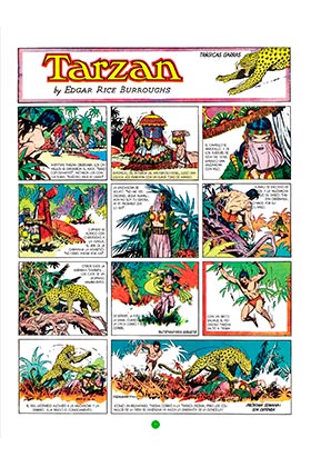 El África misteriosa donde vive Tarzan acaba por convertirse en autopista a la aventura de todo tipo y nivel una especie de cruce de caminos místicos e históricos, casi un mundo apartado del tiempo, donde alternan civilizaciones perdidas y razas ocultas. Burne Hogarth descubre y saca partido a la viñeta grande y espectacular, mientras las andanzas del hombre-mono desembocan inevitablemente en lo fantástico