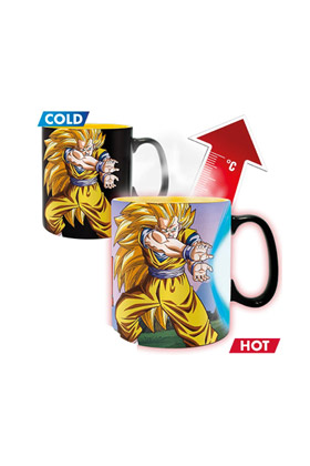 Blade Representaciones nos trae esta taza de Goku, transformado en su forma más poderosa, el super saiyan 3, lanzandoi su famoso Kamehameha en Dragon Ball Z. Todas las mañanas, podrás ver cómo tu taza cambia radicalmente cuando te sirves tu chocolate caliente, tu té o tu café. La taza tiene una capacidad de 460 ml.