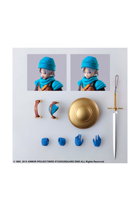Square Enix presenta al impetuoso pero talentoso espadachín Terry procedente de Dragon Quest VI: Realms of Revelation en su forma Bring Arts. La figura está completamente articulada y mide unos 13 cm de alto. Viene con 2x cara opcionales, 2x pares de manos opcionales, 1x espada, 1x escudo y 1x base con soporte articulado para su exposición.