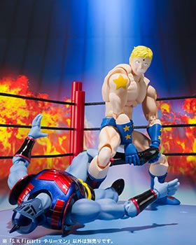 Bandai presenta la figura de Terryman de la serie "Kinnikuman" para su colección S.H. Figuarts. La figura cuenta con nuevos detalles de vestuario y otras características añadidas. Mide 15 cm, incluye 2 cabezas opcionales, un set opcinal de manos y un perro.