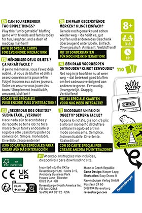 ¿Recuerdas algunos artículos? ¿Suena fácil? Not with That's Not A Hat - Cultura Pop! Este "inolvidable" e ingeniosamente sencillo juego de fiesta muestra de forma sorprendente y divertida la facilidad con la que nuestro cerebro puede confundirse. Lo tienes en la cabeza y se ha ido de nuevo, entonces tienes que farolear bien y de manera convincente dando el regalo a los demás. Ahora con objetos icónicos de diferentes décadas: 30 cartas especiales para una interacción aún mayor!