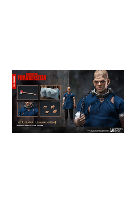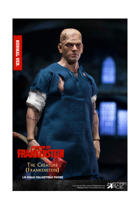 Star Ace presenta su versión del monstruo de Frankenstein, conocido por las películas de Hammer Films de los años 70. Esta figura articulada de 32 centímetros en escala 1/6 y presenta los rasgos de Dave Prowse como La Criatura y su vestimenta es la original de la película "Horror of Frankenstein" de 1970. Se ha pintado a mano, lo que hace que la expresión facial sea muy detallada. Incluye manos intercambiables, un hacha, ropa, un trapo, un collar y una base soporte para su exhibición.