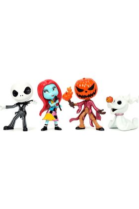 Jada Toys presenta, dentro de la colección Metalfigs, este set de 4 figuras de metal. Tienen una altura de 7 cm., se presentan en una caja con ventana y están basadas en los personajes de la película "The Nightmare Before Christmas" ("Pesadilla antes de Navidad" en España): Jack Skellington, Sally, Zero y Jack Skellington Pumpkin. Edad mínima recomendada 8 años.