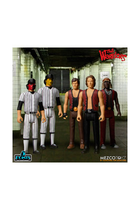Mezco Toyz, dentro de su nueva colección 5 points presenta este set de 5 figuras de The Warriors basadas en la película con ese nombre. El set incluye las figuras de Ajax, Swan, Cleon y dos de Baseball Furies y se completan con varios accesorios que se adaptan a las manos de cada figura, así como un fondo de plataforma de metro de Nueva York. Los accesorios que se incluyen son 2 bates de béisbol, 1 lata de pintura en aerosol, 1 cóctel Molotov encendido, 1 navaja, 1 tubo, 1 cadena y 1 tabla de madera con púas. Todas las figuras miden aproximadamente 10 cm y están hechas de PVC.