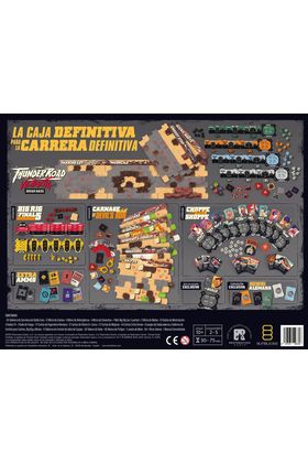 10 Tableros de Carretera de Doble Cara, 12 Minis de Coches, 6 Minis de Helicópteros, 4 Minis de Siniestros, 1 Mini Big Rig (en 3 partes), 5 Minis de Motos 25 Dados de Movimiento, 5 Dados FX, 1 Dado de Fuego, 72 Cartas de Ingeniería Alemana, 21 Cartas de Efecto En Curso, 27 Cartas de Mejoras, 54 Cartas Extra Ammo, 6 Juegos de Salpicaderos y Tableros de Control para Coches, Big Rig y Motos, 11 Tableros de Control de Jefes de Equipo, 30 Tokens de Daño, 48 Tokens de Peligro 1 Loseta de Meta 50+ Otros Tokens y 1 Manual Consolidado.