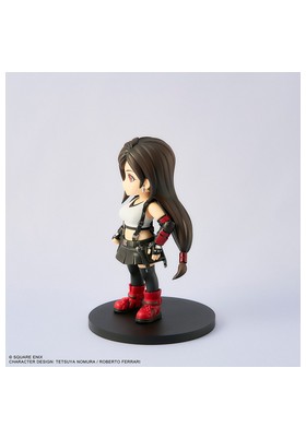 Square Enix recupera, dentro de la colección Adorable Arts, la figura de Tifa Lockhart. Mide 11 cm y está basada en el personaje del videojuego "Final Fantasy VII Rebirth". Contiene piezas adicionales para recrear sus luchas a puñetazo limpio o su preparación de cócteles en el bar Séptimo Cielo. Cuenta con una base circular negra que le aporta estabilidad.