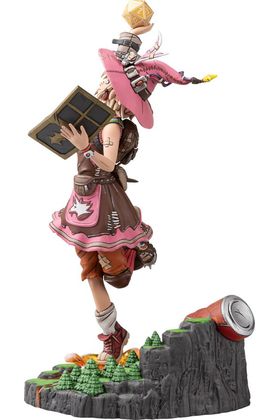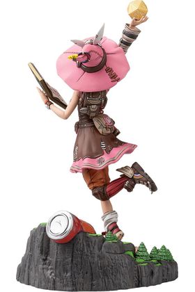 Dark Horse presenta esta figura deluxe de Tina the Bunker Master. Mide 21 cm, está hecha de PVC y pintada a mano. Está basada en el aspecto del personaje del videojuego "Tiny Tina's Wonderlands", spin-off de la saga "Borderlands". La base recrea el mundo ficticio de Wonderlands, donde transcurre la partida de rol en la que hace de master, mientras sostiene en alto un dado de 20 caras y en la otra mano el libro con anotaciones de la partida.