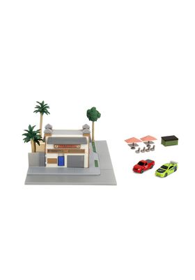 Jada Toys presenta, dentro de la colección Nano Scene, esta maqueta de la cafetería de Toretto. Tiene unas medidas de 13x20x18 cm y recrea su aspecto en la película "The Fast & the Furious" ("A todo gas" en España). La maqueta es una reproducción a escala del edificio que incluye un patio trasero con aparcamientos y un mostrador exterior con puerta abatible, además de un espacio de terraza con sillas, mesas y sombrillas. Incluye además 2x vehículos de metal de 4 cm (un Mitsubishi Eclipse de 1995 y un Ford F-150 SVT Lightning de 1999) con ruedas de dirección libre y neumáticos de goma. Edad mínima recomendada 8 años.