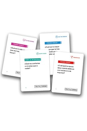Truth or Drink Segunda Edicion es un juego de cartas ideal para animar cualquier fiesta, en el que los jugadores se enfrentan a 410 preguntas muy personales distribuidas en cuatro niveles de intimidad que permiten conocer mejor a las personas con las que juegas. La edición actualizada incluye mas del 80 por ciento de preguntas nuevas y revisadas respecto a la versión original y se organiza en los niveles Happy Hour para romper el hielo y conocer a conocidos, On the Rocks con preguntas mas personales para amigos cercanos, Ultima Llamada con preguntas directas y profundas, y Extra Dirty con preguntas extremadamente subidas de tono. El juego incluye además cartas Buy a Round que permiten que mas personas respondan a una pregunta y cartas en blanco para crear preguntas propias, planteando siempre el dilema entre decir la verdad o beber. Contenido 410 cartas mas cartas especiales y cartas en blanco. Jugadores de 2 a 8. Edad recomendada 18 plus. Idioma Castellano. Tiempo de partida 30 a 60 minutos.