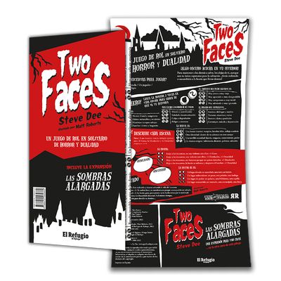Para aumentar tu experiencia de juego, Two Faces incluye en la otra cara del pliego una expansión: Las sombras alargadas, con 8 tablas extras para añadir color a la preparación de la partida y 5 tablas más para profundizar en el desarrollo de las escenas. Coge lo que te apetezca!