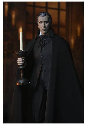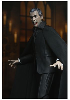 Neca presenta, dentro de la colección Scale Action Figure, la figura de Ultimate Count Dracula. Mide 18 cm y está basada en la apariencia de Christopher Lee en la película de la Hammer de 1958 "Horror of Dracula". Incluye 1x capa de tela extraíble, 2x cabezas intercambiables, 3x manos, 2x candelabros y 1x pala. Se presenta en una caja con ventana.