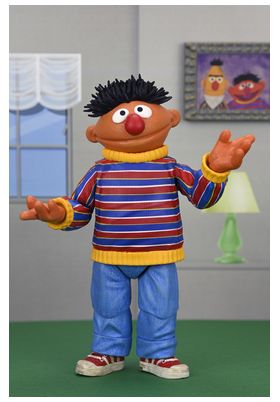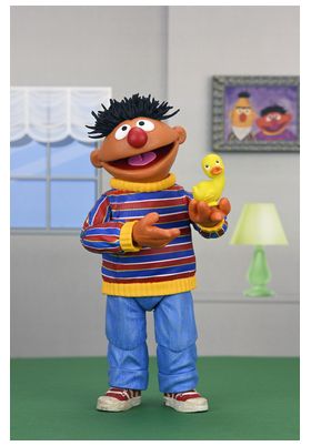 Neca presenta, dentro de la colección Scale Action Figure, la figura de Ultimate Epi. Mide 18 cm. y está basada en su apariencia en el programa infantil de televisión "Barrio Sésamo" ("Sesame Street" en inglés). Epi (Ernie en inglés) tiene 27 puntos de articulación e incluye manos y cabezas intercambiables, 1x patito de goma, 1x foto enmarcada de Epi y Blas y 1x letra "C". Puedes exponerla junto a la figura de Blas (se vende por separado). Se presenta en una caja con ventana con solapa frontal abatible.
