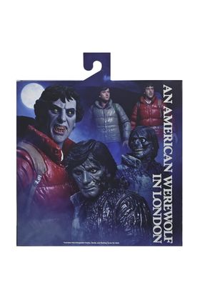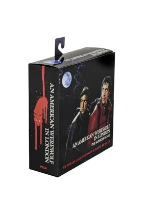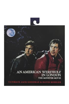 Neca vuelve a presentar en su colección Ultimate este pack de 2 figuras articulada de David Kessler y Jack Goodman, basada en la película de 1981 "An American Werewolf in London" (Conocida en España como "Un Hombre Lobo Americano en Londres"). Miden aproximadamente 18 cm de alto, representan a los protagonistas mientras vagan por los páramos. Incluye 1x cabeza extra para David con expresión de "pesadilla", 2x cabezas intercambiables, 2x brazos y 1x chaqueta para Jack. Estas piezas facilitan recrear el nivel de descomposición de Jack durante la película. Se presenta en una caja ilustrada con ventana y solapa frontal.