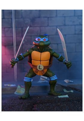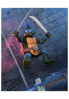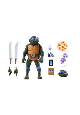 Neca presenta, dentro de la colección Scale Action, la figura de Ultimate Leonardo. Mide 18 cm y está basada en el personaje de la serie "Teenage Mutant Ninja Turtles". Incluye 1x cabeza extra, 1x pizza, 1x cinta VHS, 1x par de manos, 2x espadas, 1x mini figura, 1x monstruo y 1x prismatico. Se presenta en una caja con ventana con estilo VHS del Pizza Club. UNIDADES LIMITADAS.
