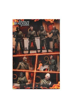 Neca reintroduce a su colección Ultimate esta figura articulada de los demonios de la pesadilla de David, protagonista de la película de 1981 "An American Werewolf in London" (conocida en España como "Un Hombre Lobo Americano en Londres"). Esta figura totalmente articulada mide aproximadamente 18 cm de alto e incluye: 4x cabezas intercambiables, 2x manos, 3x armas de fuego, 2x cuchillos, 1x antorcha y 1x casco. Se presenta en una caja ilustrada con ventana y solapa frontal.