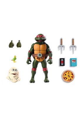 Neca presenta, dentro de la colección Sclae Action, la figura de Ultimate Raphael. Mide 18 cm y está basada en el personaje de la serie "Teenage Mutant Ninja Turtles". Contiene 2x sais, 1x par de manos, 1x pájaro, 1x cinta VHS, 1x pizza, 1x libro y 1x monstruo. Se presenta en una caja con ventana con estilo VHS del Pizza Club. UNIDADES LIMITADAS.