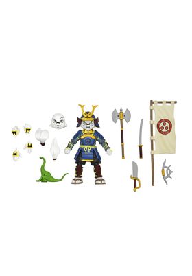 Neca presenta, dentro de la colección Scale Action, la figura Ultimate Samurai Adventure Usagi Yojimbo. Mide 18 cm. y ha sido desarrolada en colaboración con Stan Sakai Está basada en la clasica serie de dibujos animados "Teenage Mutant Ninja Turtles". Se incluye 1x cabeza alternativa, 4x manos opcionales, 2x pares de orejas alternativas, 1x hacha, 1x espada mariposa, 1x katana, 1x Sashimono y a Spot, su inseparable mascota. Se presenta en una caja con solapa que recuerda a las emblemáticas cintas VHS. UNIDADES LIMITADAS.