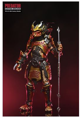 Neca incorpora a su colección Ultimate esta figura de Samurai Predator, inspirada en su aparición en el videojuego de 2020 "Predator: Hunting Grounds". Este legendario yautja replica su armadura, armas y estética. Tiene una altura de 18 cm e incluye 2x manos intercambiables, 2x cabezas (enmascarada y sin máscara), 1x katana, 2x combisticks (uno extendido y otro retraído) y 1x cañón de plasma articulado. Se presenta en una caja con ventana y tapa abatible.
