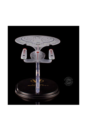 Quantum Mechanix, presenta esta réplica Mini Master, basada en la serie de TV "Star Trek: The Next Generation". Se trata de una réplica exacta de la U.S.S. Enterprise D, pintada a mano, completa con la innovadora tecnología de soporte magnético. Mide unos 8 cm de alto y está hecha en PVC.
