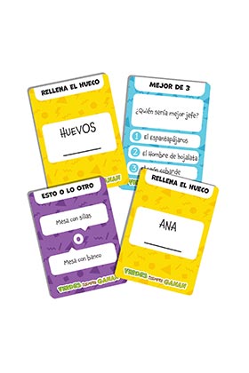 Componentes: 210 cartas de pregunta (70 de cada tipo), 12 rotuladores y pizarras borrables, 12 indicadores de equipo a doble cara y 1 reglamento