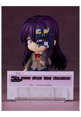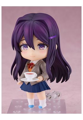 Good Smile Company presenta, dentro de la colección Nendoroid, la figura de Yuri. Mide 10 cm y está basada en su apariencia en el juego "Doki Doki Literature Club". Contiene placas faciales (cara sonriente, impaciente ligeramente sonrojada y pegajosa) y partes opcionales (libro, taza y palillo y hoja de cuadros de diálogo del juego y poema).